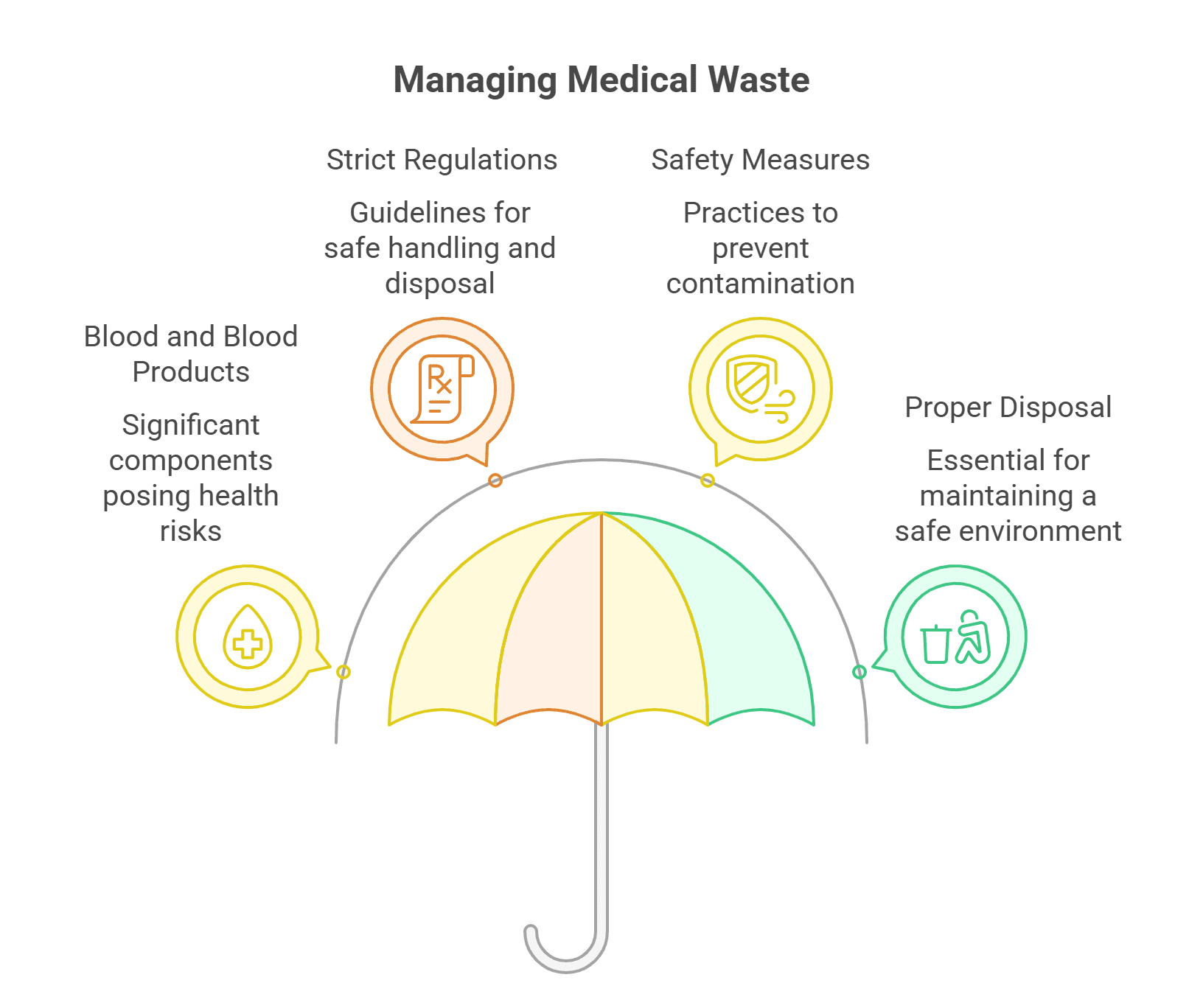 Blood and blood products belong to some type of medical waste, and hence constitute an important aspect of medical waste management. Although the waste from blood is mostly considered biohazardous waste, it requires utmost care at the time of handling. From sharps waste to pathological waste and isolation waste, all should be disposed of properly to safeguard everyone's health involved in blood products and materials contaminated with blood.
