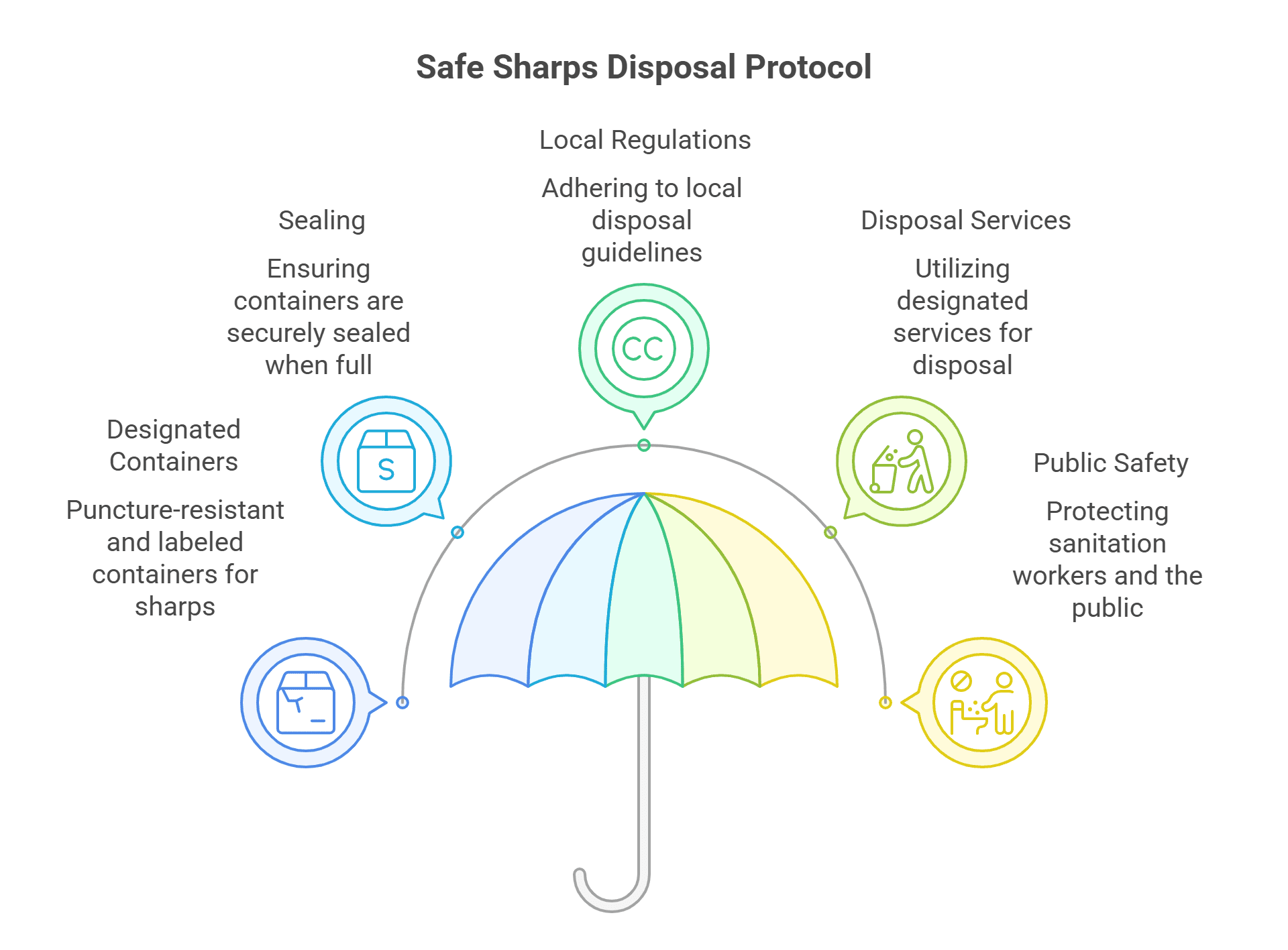 However, before describing the proper procedure for disposal step by step, let's discuss potential risks associated with improper sharps disposal. It is expected that used needles and other sharps could carry certain types of bloodborne pathogens, which include viruses HIV, hepatitis B, and hepatitis C through which infections are possible via needlestick injuries or contact with bodily fluids. The CDC, through various research and findings, says that improper sharps disposal is one of the biggest threats to healthcare workers, sanitation workers, and the public at large. Thus, the question, of what is the right procedure for the disposal of used sharps materials? becomes very important to everyone's safety.