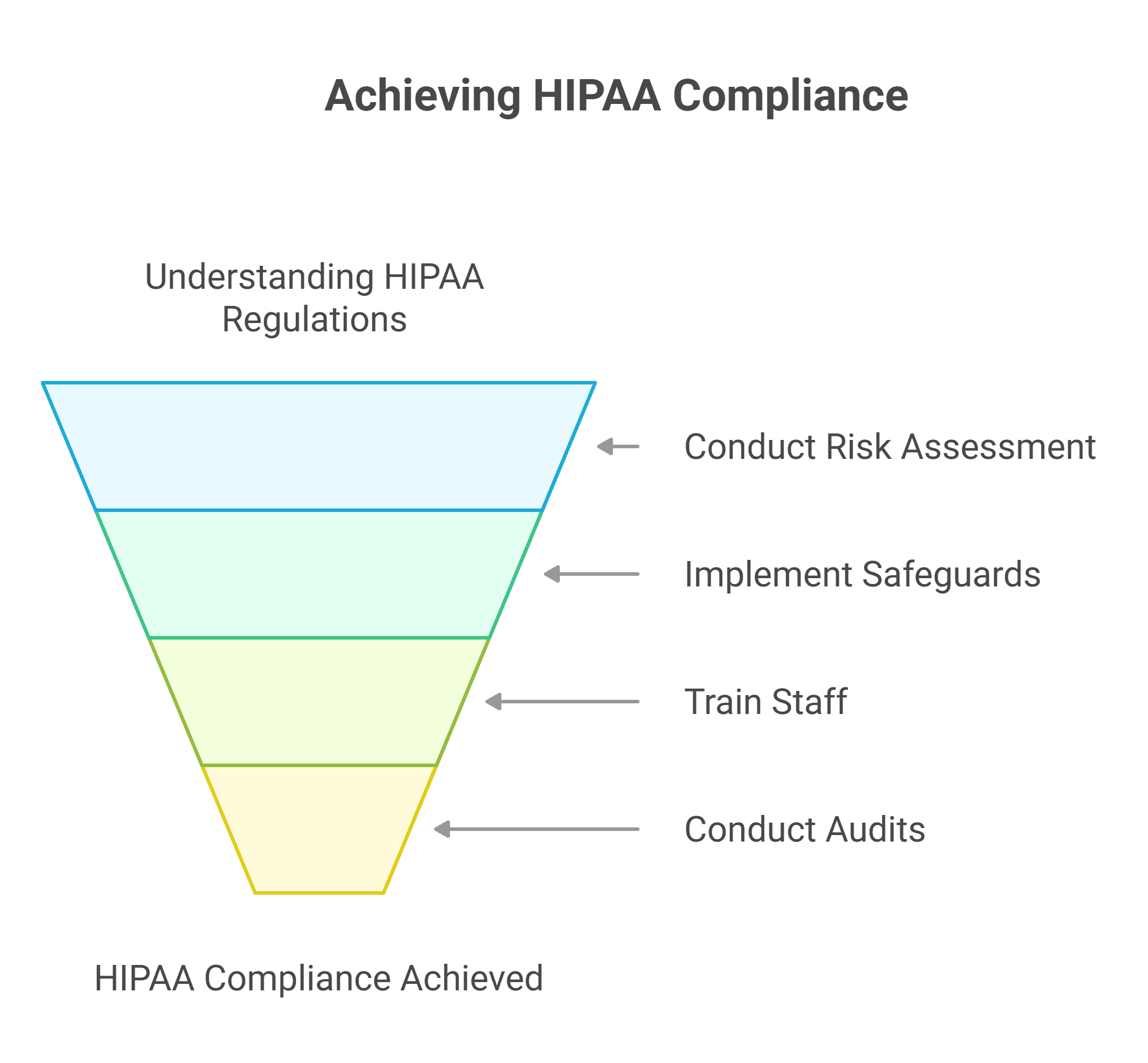 Achieving HIPAA compliance can seem daunting but breaking it into actionable steps simplifies the manner. Here’s a way to get started: